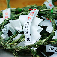 そして祭典終了後、夏の草花の中で一番精気が強いとされる茅で作られた「茅の輪」をくぐることにより、無病息災で特に疫病を免れるとされておりま す。尚、当宮では御家庭で祀られる「茅の輪」を授与致しております。参拝者は、古い茅の輪を納め、新しい茅の輪を受けて帰られます。この茅の輪は御家庭の 神棚もしくは軒下に祀り、家族が健康で夏を過ごせるように祈るものです。